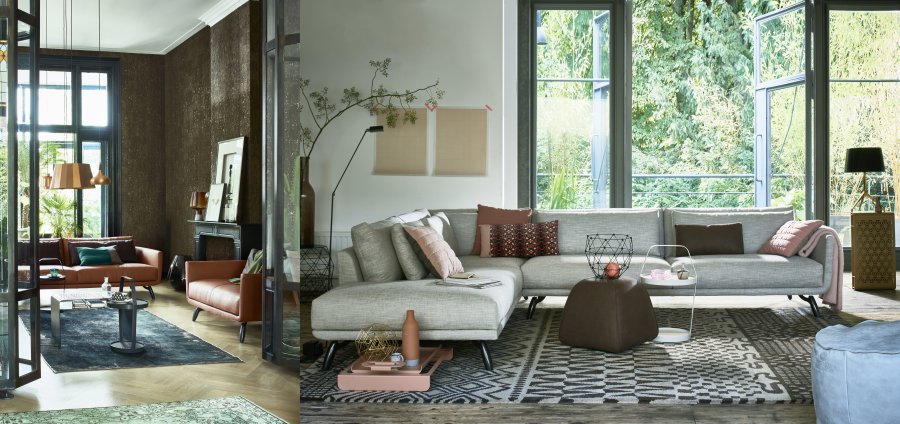Dat de betonlook trend uit 2016 zich verder doorzet. De mooie natuurlijke en rauwe uitstraling past perfect bij de grootse dessins en warme, diepe kleuren.